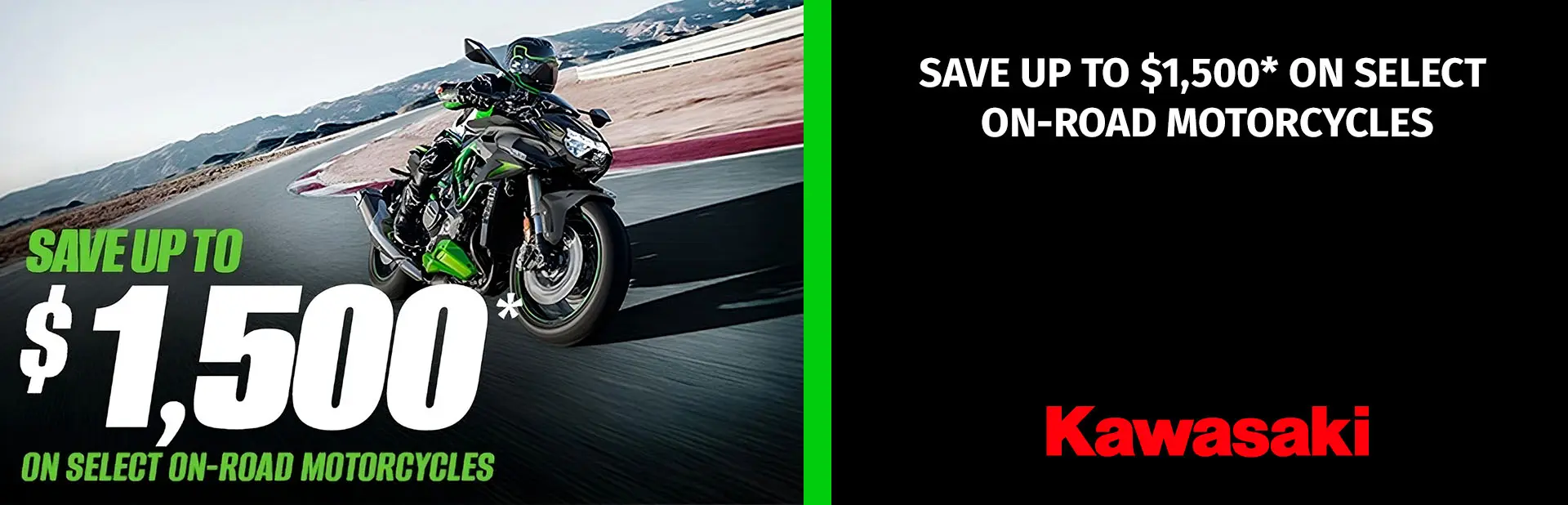 SAVE UP TO $1,500* ON SELECT ON-ROAD MOTORCYCLES
